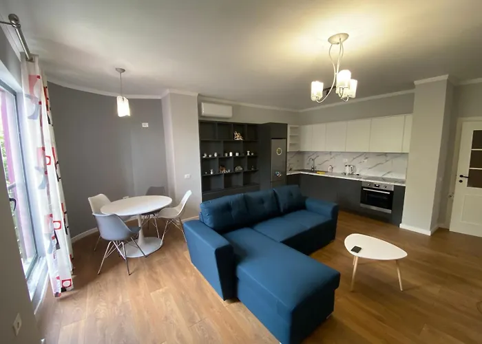 The spacious Lana River Modern Apartment Tirana is located 2.5 km from the I Love Tirana Sign and an 8-minute walk from the Cavaliero Club. This apartment offers a private parking lot on site and modern comforts like Wi-Fi.